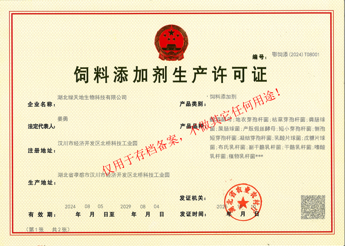 湖北綠天地生物科技有限公司 (簡稱綠天地公司)投資7000萬元,擁有25000平方米的廠房和國內(nèi)先進的設備360臺套,建有微生物發(fā)酵、發(fā)酵冷凍干燥、低溫造粒等8個車間,發(fā)酵罐總?cè)萘?50立方米,專業(yè)的飼用級益生菌發(fā)酵生產(chǎn)基地。 公司已通過IS09001:2015質(zhì)量管理體系認證。 綠天地公司得到了華中農(nóng)業(yè)大學、中國農(nóng)...